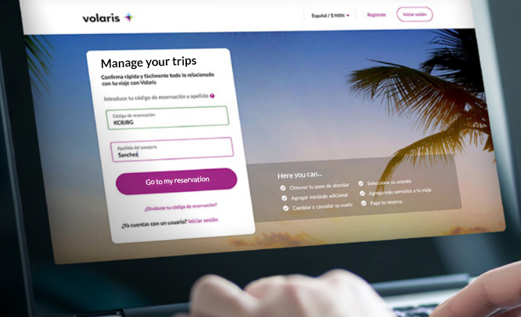If you need to review the services included in your reservation, add extra bags, or change your flight, log in to My trips with your reservation code and last name.